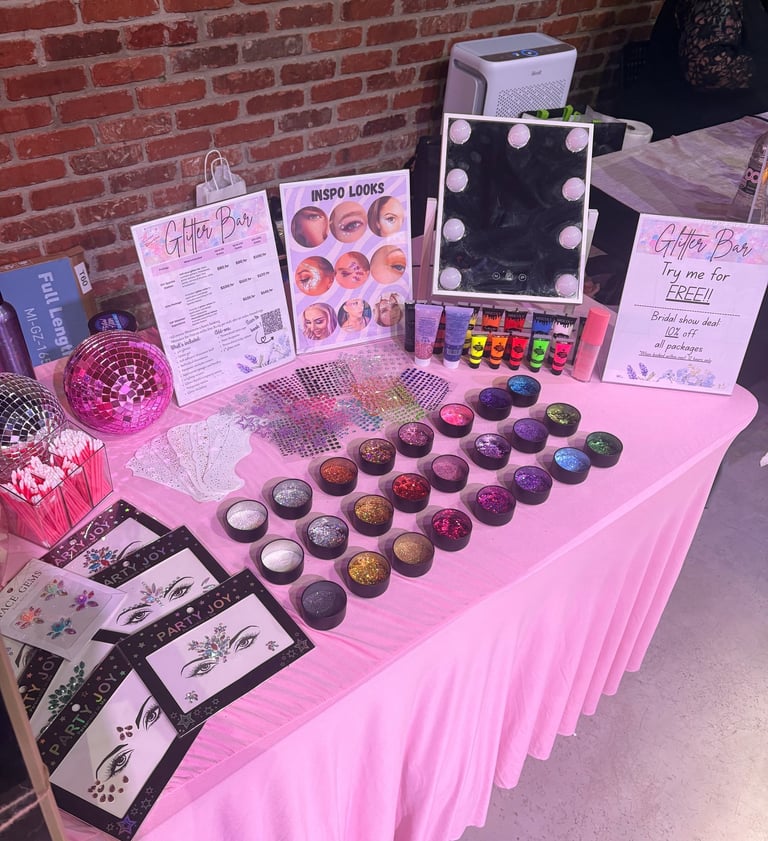 Explore our glitter bar services for parties, weddings, festivals, and private events. Shine bright!