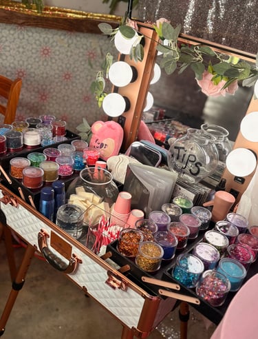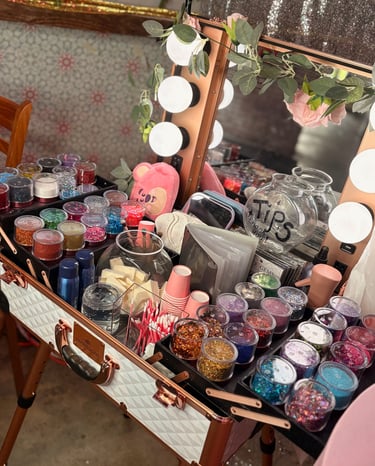 Offering unique packages for bachelorette parties, wedding receptions, festivals, cons, and more! Discover how we can make your event unforgettable with our glitter bar.