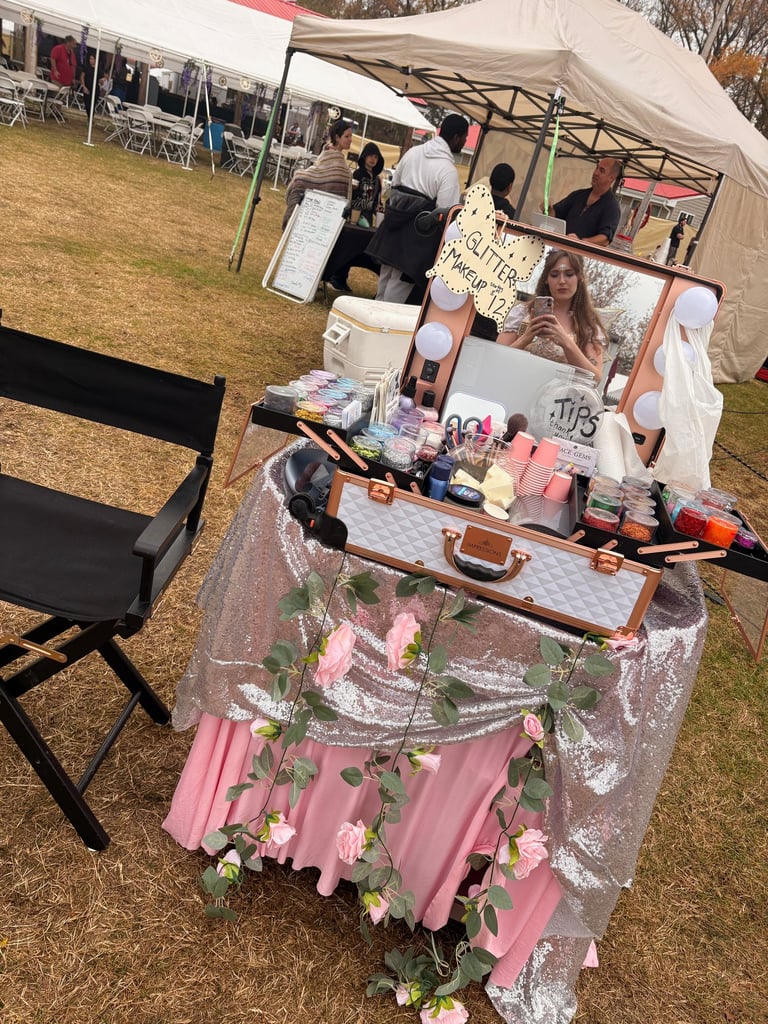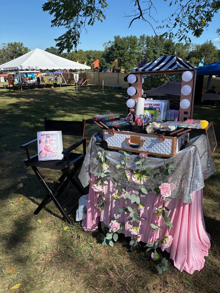 A magical Glitter Bar bringing sparkle, shimmer, and fairy-tale glam to every festival-goer